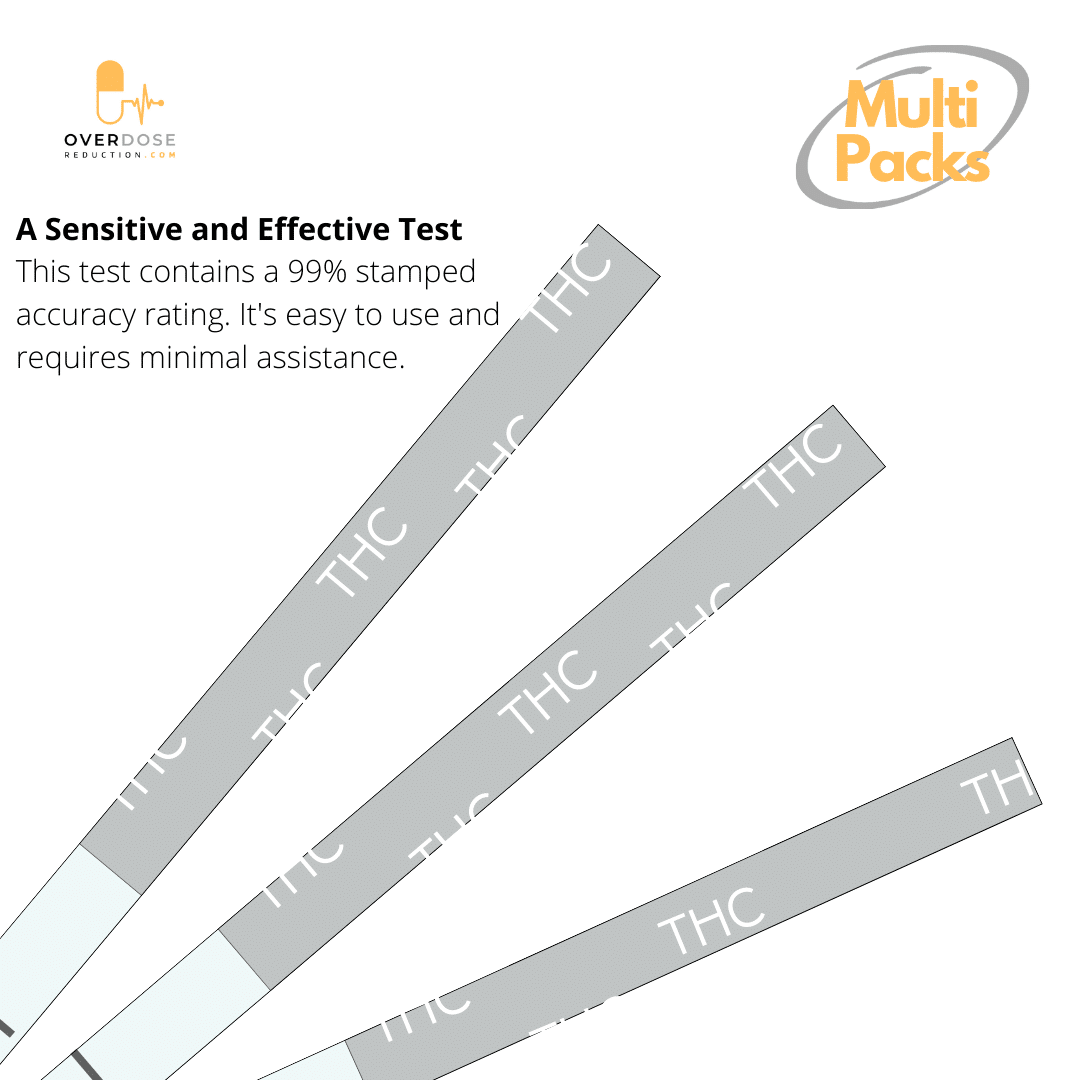 The THC test provided by Overdose Reduction is a fast and accurate urine test strip that will deliver results in under 10 minutes. The test detected the presence of THC in urine at the 50 ng/mL cutoff. THC can be detected in urine up to 30 days after last use.